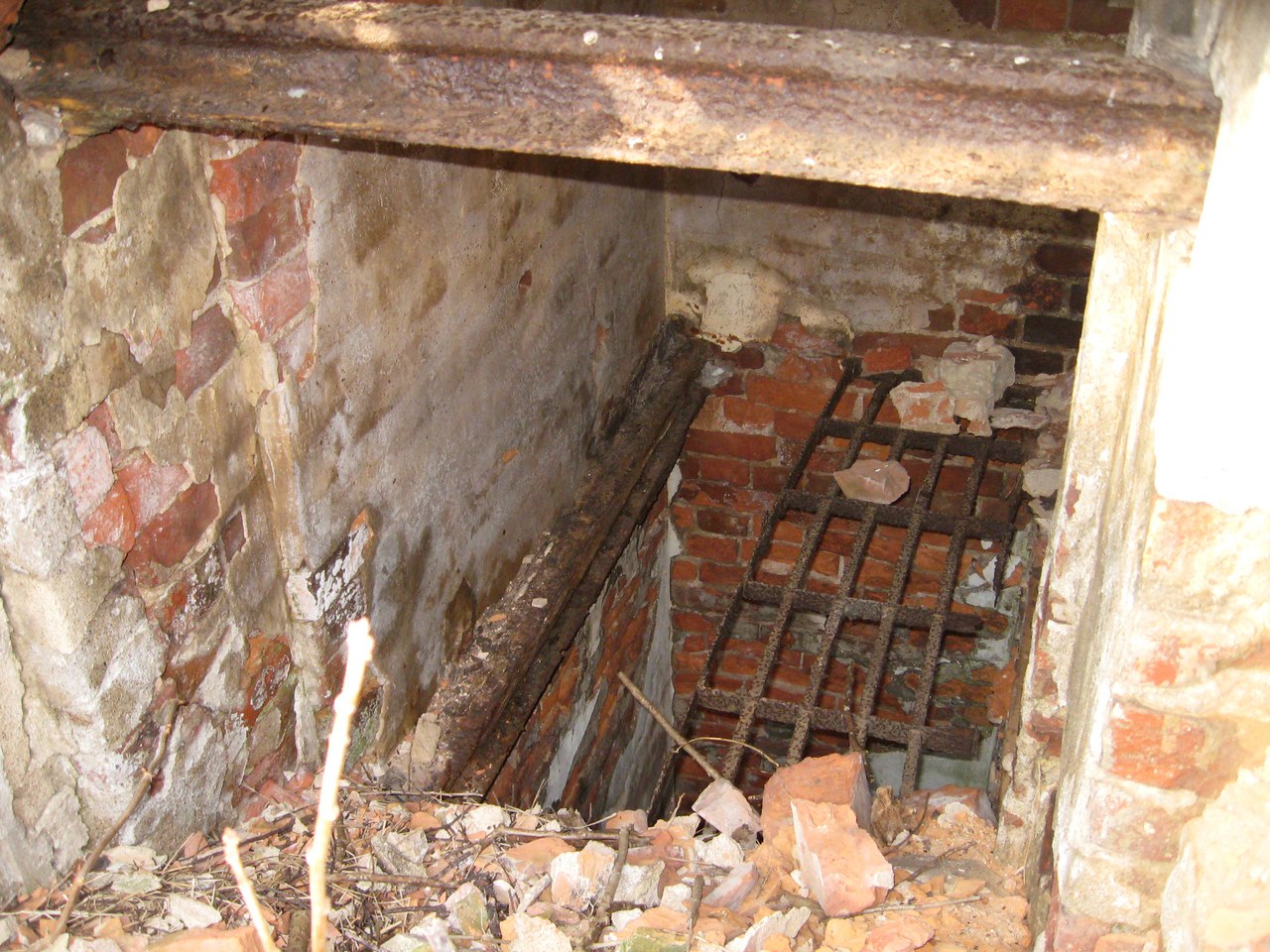 По незнанию - можно в нее свалиться, и это будет весьма вредно для здоровья. Хотя есть старинная решетка, которая затормозит падение...Это один из входов сверху в ту самую шахту, которую мы видели в пороховом сарае снизу.