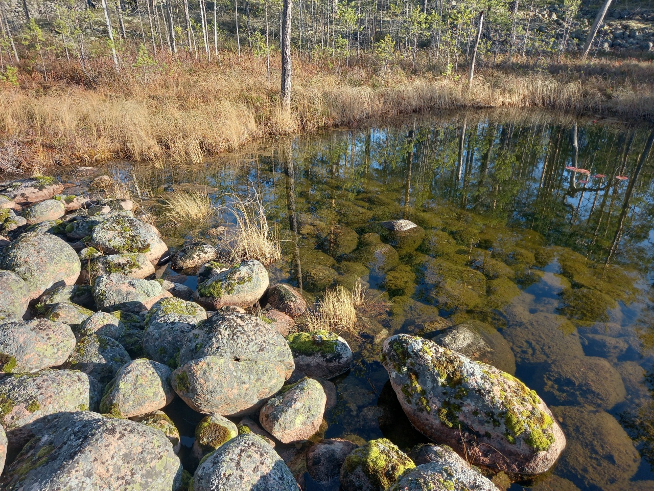 Из этих камней здесь состоит все. На них растет лес. Между ними образованы озера. Поверх них местами образовались болота. Я присел полюбоваться красотой ландшафта.